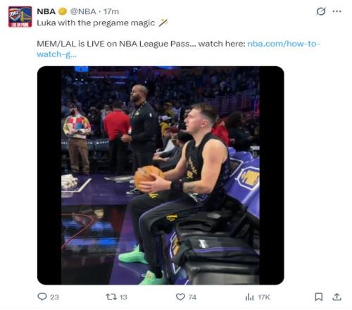 赛前东契奇坐在板凳席命中了一个超远三分球。